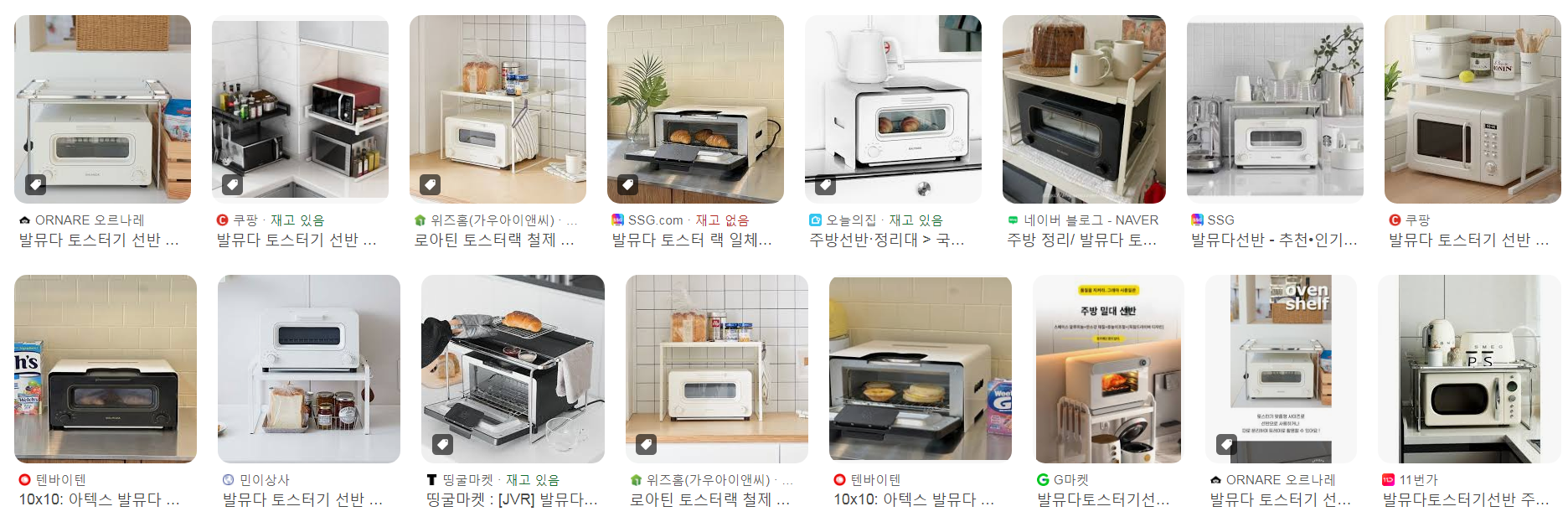 참고로 발뮤다 토스트기 전용 선반 검색하면
