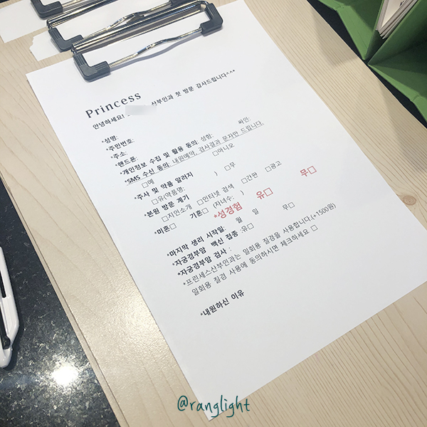 갔더니 이런 걸 적으라고 하는데 지인소개 항목 체크하면서 살짝 할인을 기대해 보았지만 그런 미래는 오지 않았다