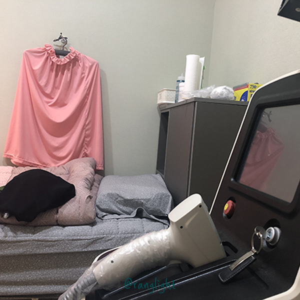 진행방법은 면도기 같은 걸로 일단 가볍게 제모를 한 다음 마취제(?) 같은 거를 바르고 20분 뒤 진짜 레이저 제모 시작