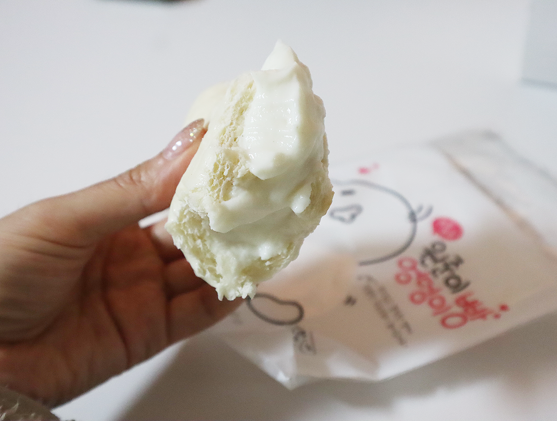 안에 넘쳐나는 크림 보이나요..? 약간 뭐라해야하지.. 우리가 일반 빵집에서 먹는 슈크림의 그런 생크림 제형이 아니다. 특히나 냉장고에 넣었다가 빼 먹으면 이 생크림 진짜 더 맛있다.. 시원하게 먹어야 맛있는 빵이니 바로 먹을거면 냉장보관하고, 바로 못 먹을 땐 냉동보관을 추천한다.