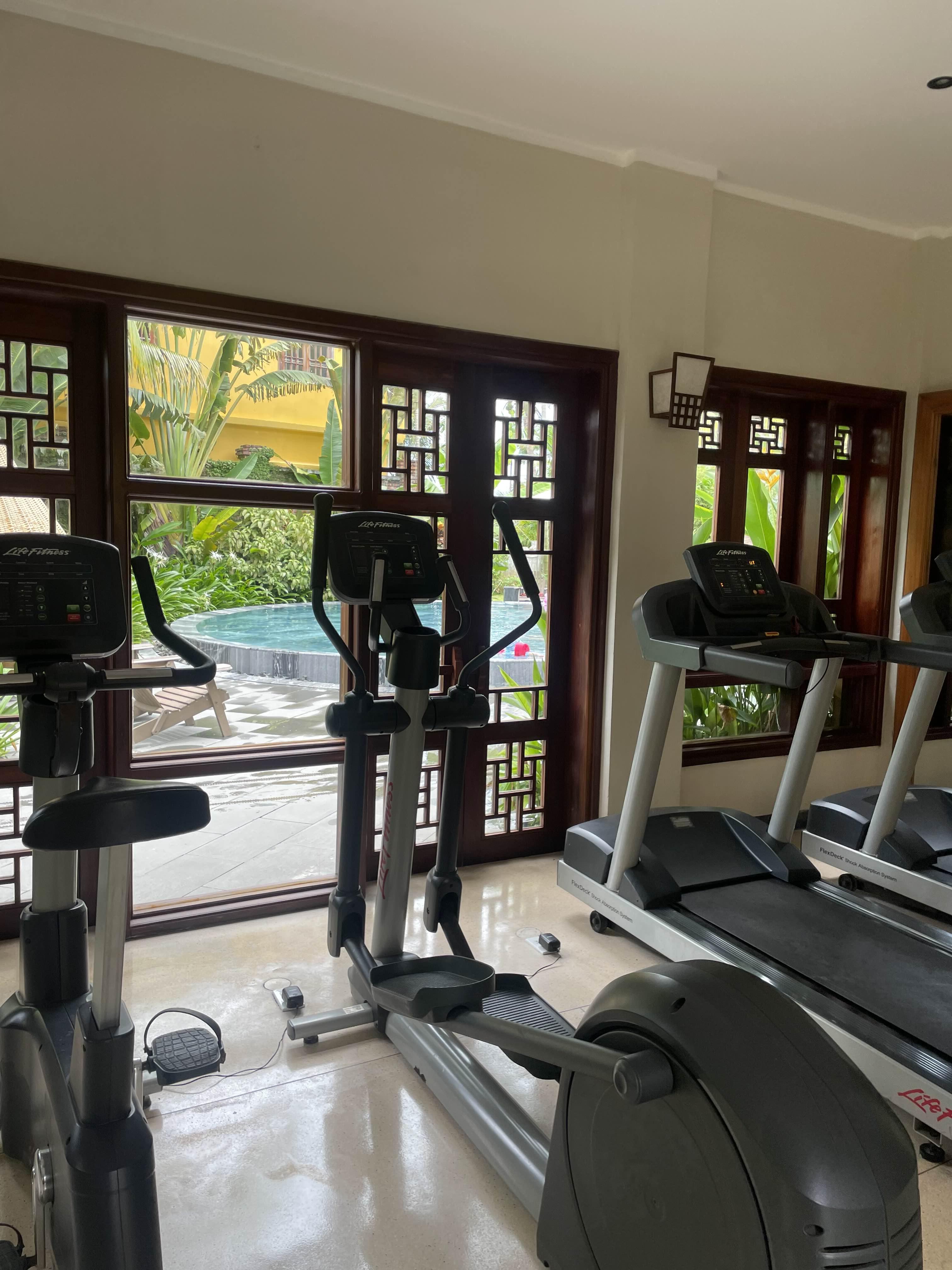런닝머신 하면서 수영장 뷰를 바라볼 수 있고요. 여기 리조트가 수영장이 정말 많은데 어린이 풀장이 보이는 곳이었어요.
