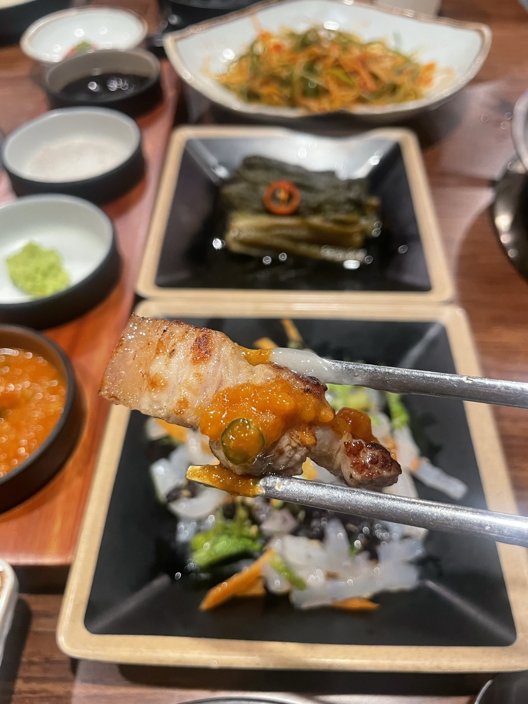 신기했던건 저는 와사비랑 소금파인데 오겹살이랑 스테이크 소스 겁나 잘 어울림