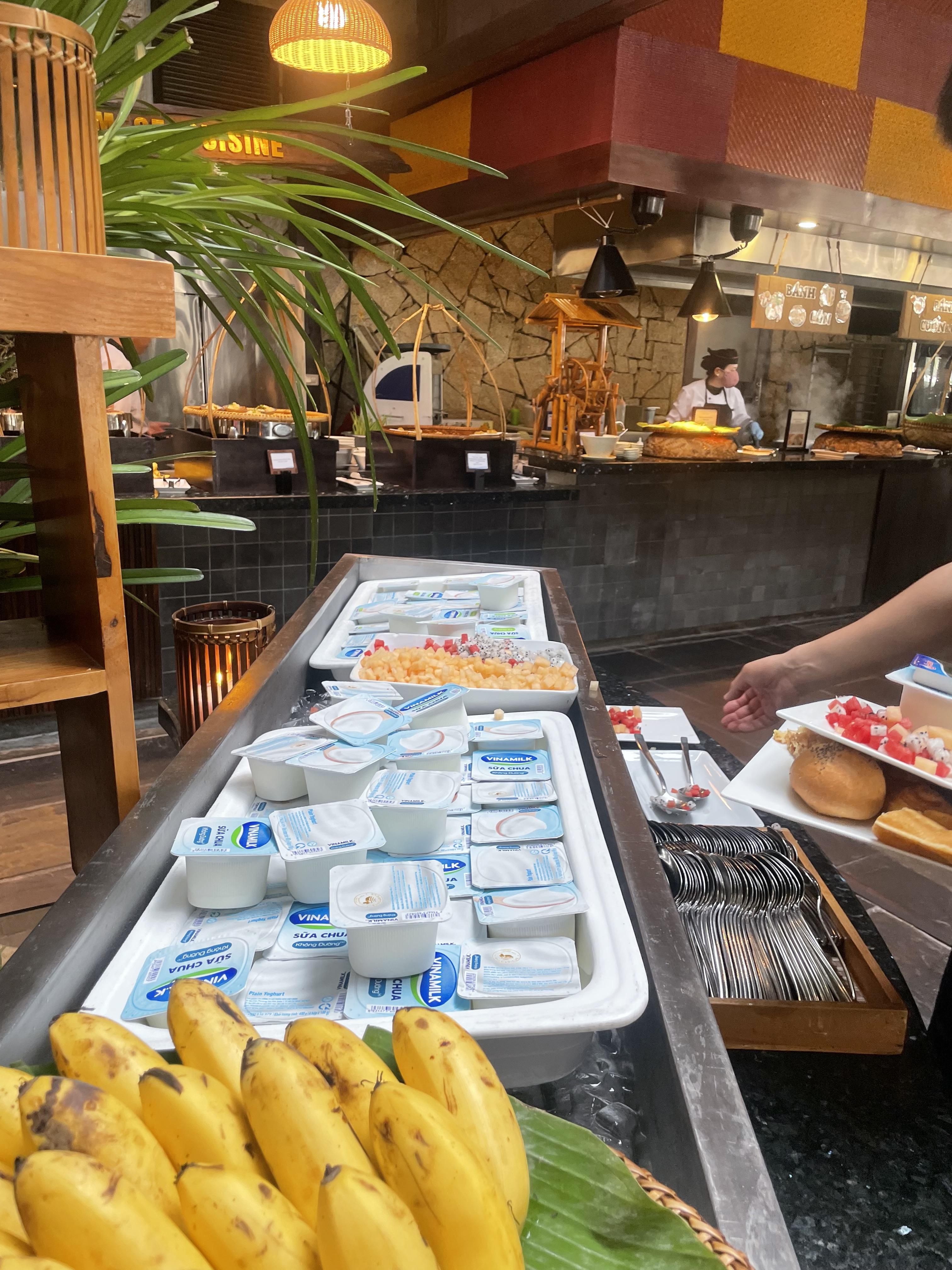 베트남에서는 요거트에 열대과일 토핑해서 먹는거 국룰입니당. 잘게 썰린 과일토핑들 있으니 함께 드셔 먹어보세요 어느 리조트를 가도 가장 무난하게 먹을 수 있는 메뉴가 아닐까 싶습니다.