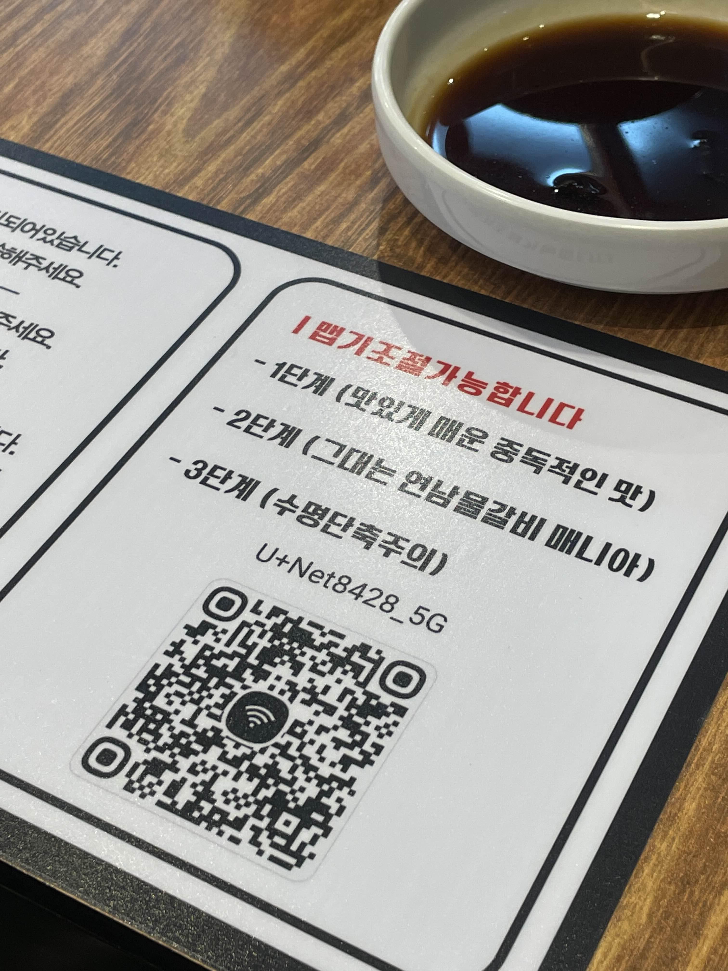 맛있게 먹는 방법이에요. 맵기 조절 가능하고 저희는 1단계로 주문했어요 먹기 딱 좋고 끝맛이 살짝 매콤한게 중독성 있어요