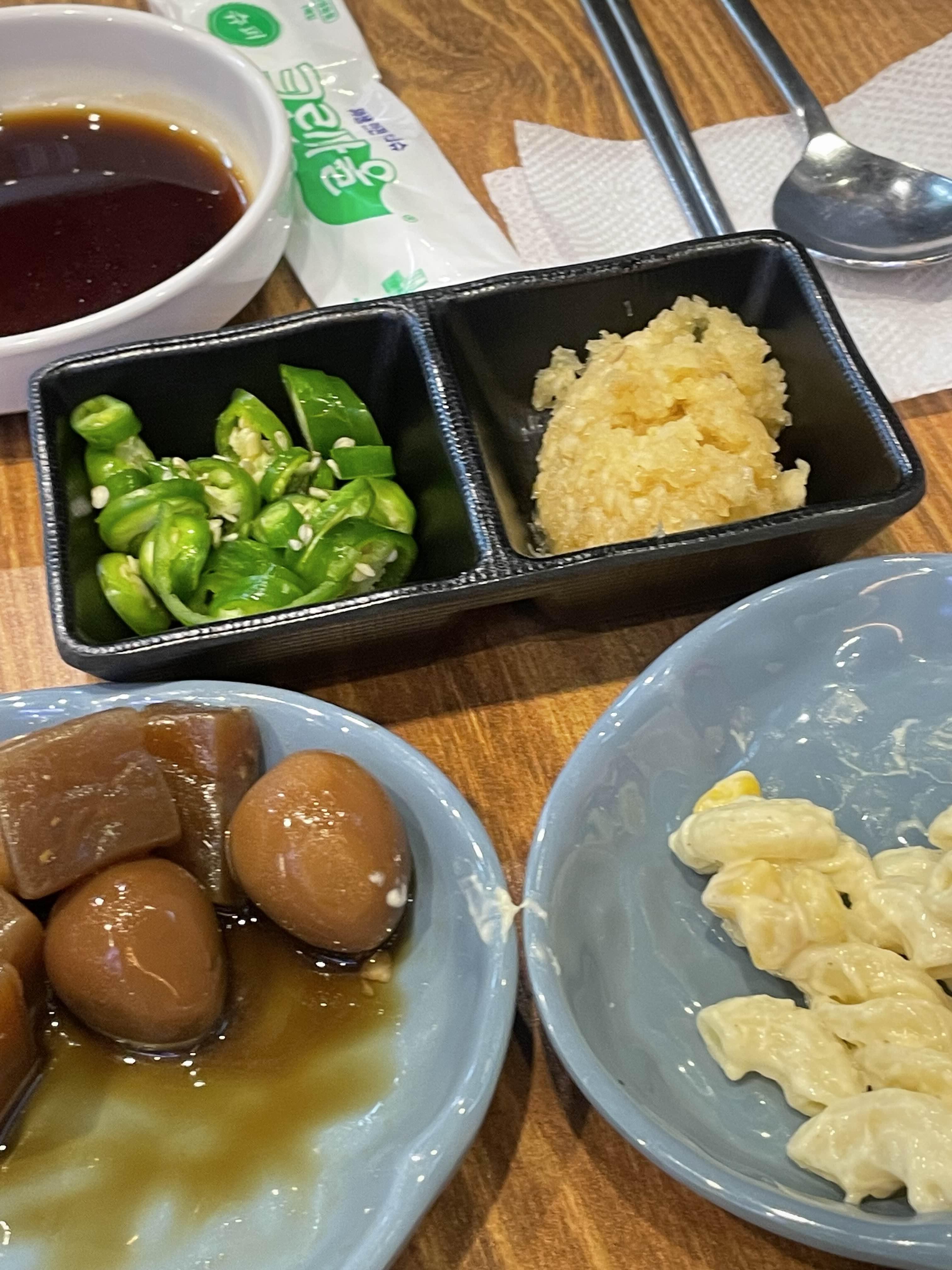 기본찬도 셀프서비스로 추가 가능하고요. 종류 다양한데 백김치랑 장조림이 대박 맛있었음. 제가 백김치를 안좋아하는데 옆에 친구가 맛있대서 한번 먹어보고 맛있어서 계속 먹음.