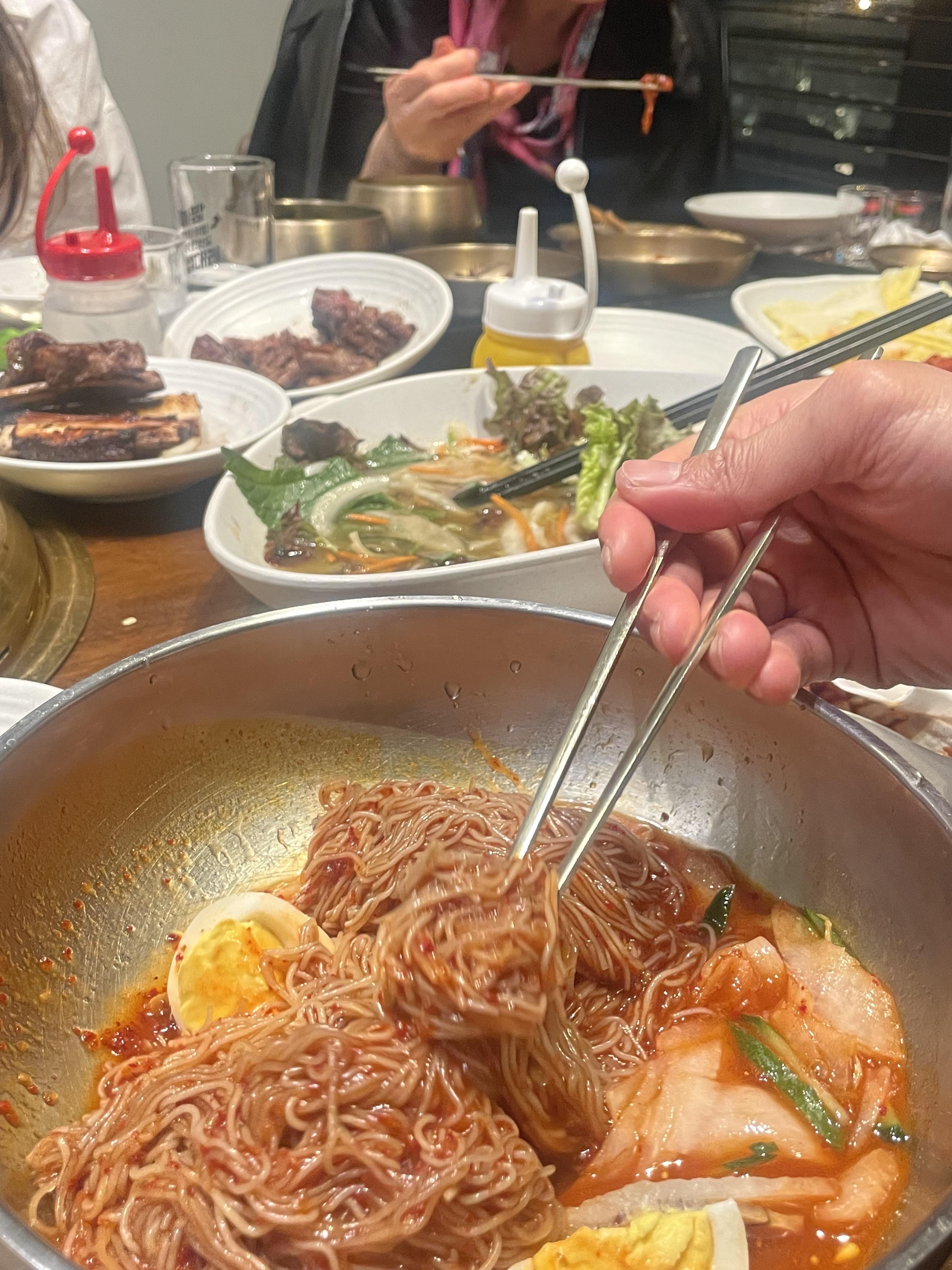 후식으로 냉면 주문했어요. 직원분의 추천은 비냉이었지만 물냉과 비냉 둘 다 주문