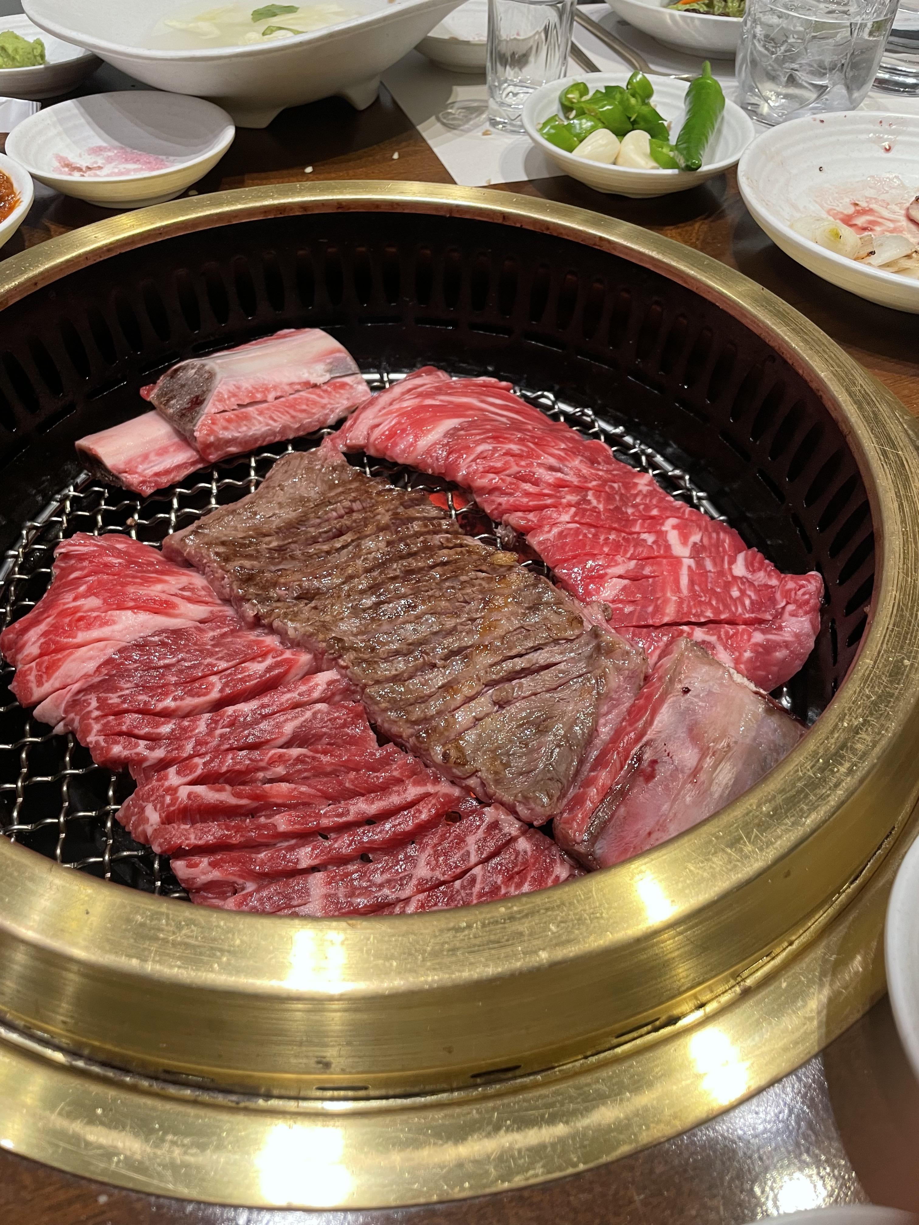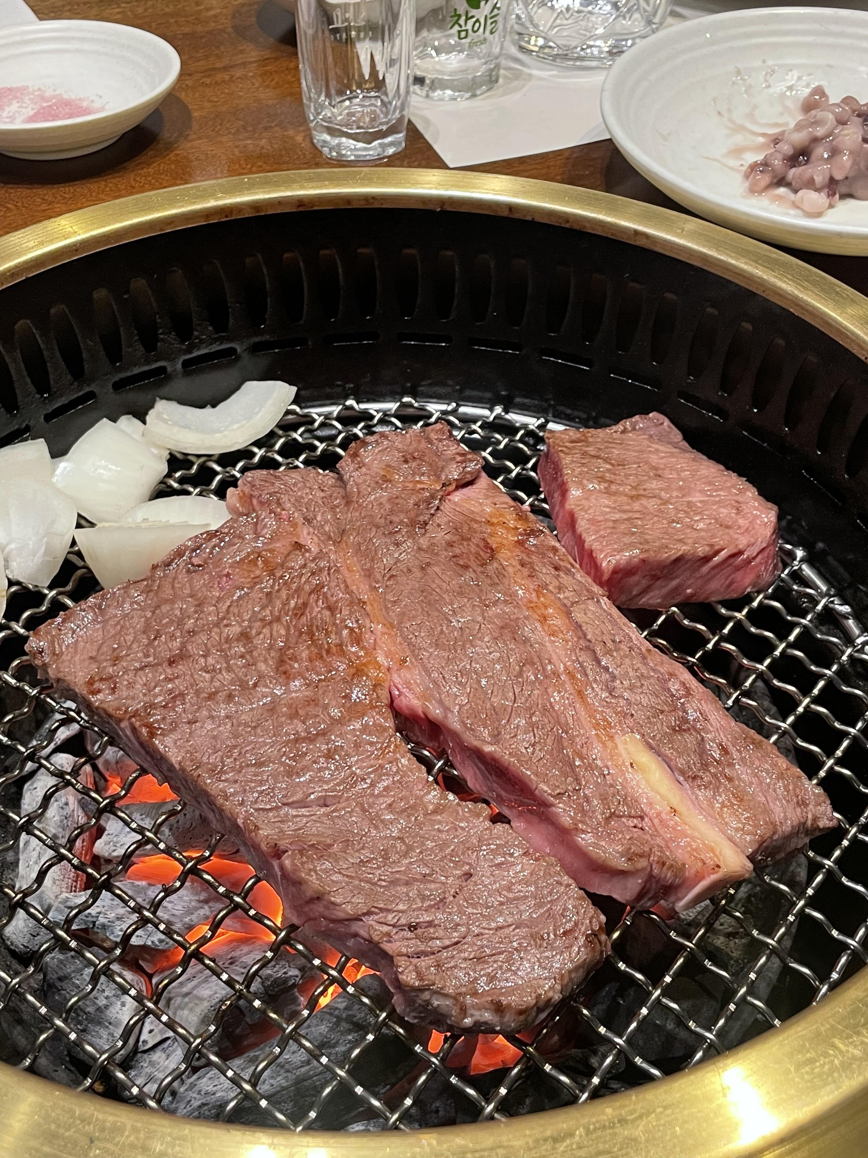한우는 맛있습니다... 일단 직접 구워주시는게 한몫하는것 같아요. 송도에서 유명한 우판등심도 직원분들이 직접 구워주시잖아요. 개인적으로 한우를 손님들이 굽게 하는건 도박인듯 ;;;