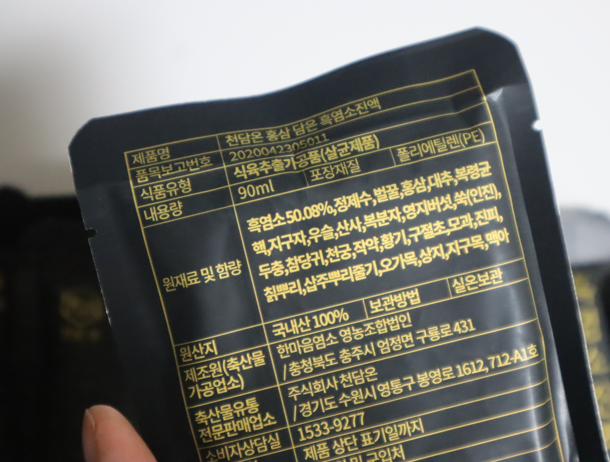 일단 가격은 30포에 199,000원으로 거의 20만원 돈입니다. 한약 지어먹는 것보단 저렴한 편이라 한약이 부담스러우신 분들은 사드실만 해요. 절대적인 값은 비싸긴 하지만 시중의 흑염소 진액치고 저렴한 편이기도 하고요